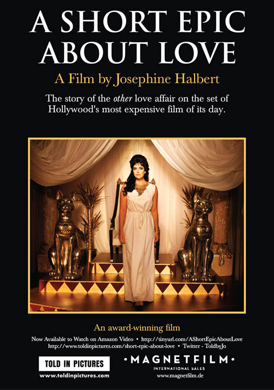 A Short Epic About Love, an award-winning short film, is a Told in Pictures Production which premiered in the Femmes Fantastique Programme at the 2014 London Short Film Festival and tells the fictional story of 'the other love affair' on the set of Hollywood's most expensive film of its day, the 1963 notorious epic, CLEOPATRA, when a young woman finds herself backstage during the final days of filming the blockbuster against the backdrop of "La Scandale", the famous romance between Elizabeth Taylor and Richard Burton, and embarks on her own intense, emotional romance. For further details, please see the A Short Epic About Love pages on this website!